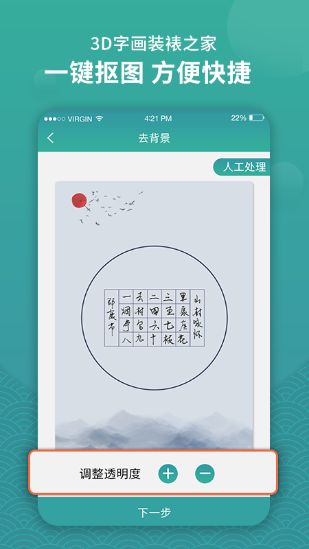 值得一提的是,软件内置的书法作品纸功能,为书法爱好者提供了极大的便利。用户只需上传白色背景的文字作品图片,软件即可一键抠图,将文字作品完美融入各种书法背景中,直接预览书法效果,尽显文人气息。这一功能不仅提升了书法作品的展示效果,也为用户提供了更多创作的灵感。